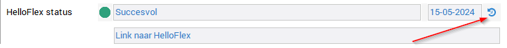 Stap 2: Controleer de HelloFlex-status. De HelloFlex-status illustreert de specifieke foutmelding. Deze kan je vinden op het tabblad Stamgegeven, door rechtsonderin op het pijltje te klikken: