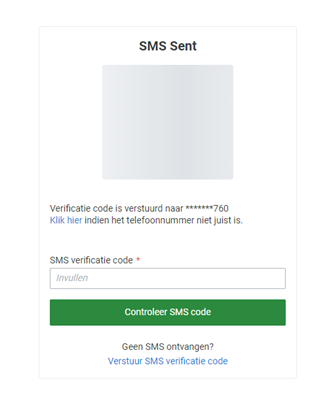 Er wordt vervolgens gevraagd om de verificatie-code, die je per sms hebt ontvangen, in te voeren en te drukken op de groene knop ‘controleer SMS code’.