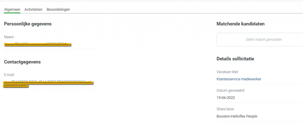 Deze informatie staat ook op de detail pagina als je de sollicitatie opent onder details sollicitatie: