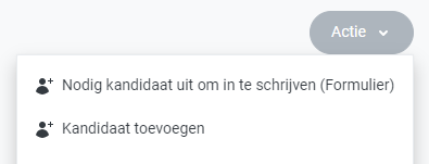 Een kandidaat kan op meerdere manieren worden toegevoegd. In de module Kandidaat, zie je de volgende opties via de knop Actie:
