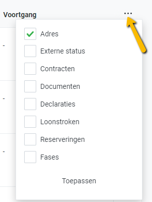- Adres - is standaard ingeschakeld. De beschrijving staat hierboven. Indien gewenst kan je deze hier uitvinken zodat deze niet meer standaard zichtbaar is.