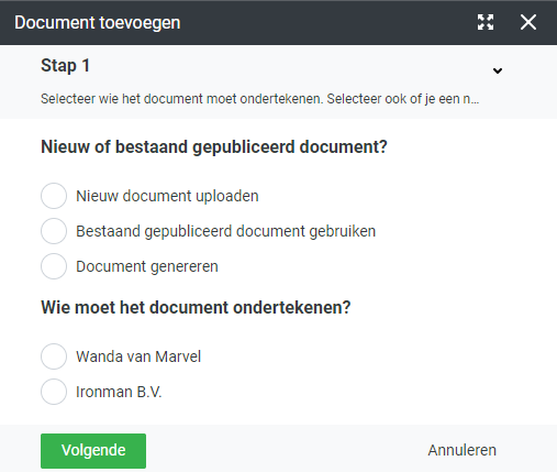 Bij het selecteren van "Nieuw document uploaden", selecteer je een bestand vanuit je computer.