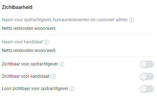 Om te beïnvloeden wat kandidaten en opdrachtgevers kunnen zien op de declaraties, kunnen componenten die in HelloFlex bekend zijn voor kandidaten en opdrachtgevers zichtbaar -of juist onzichtbaar- worden gemaakt.