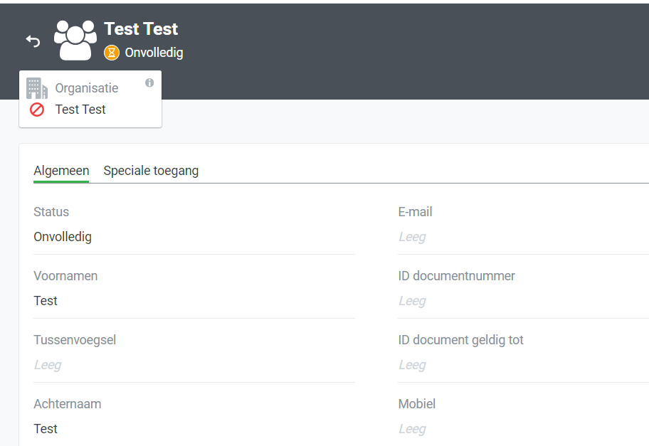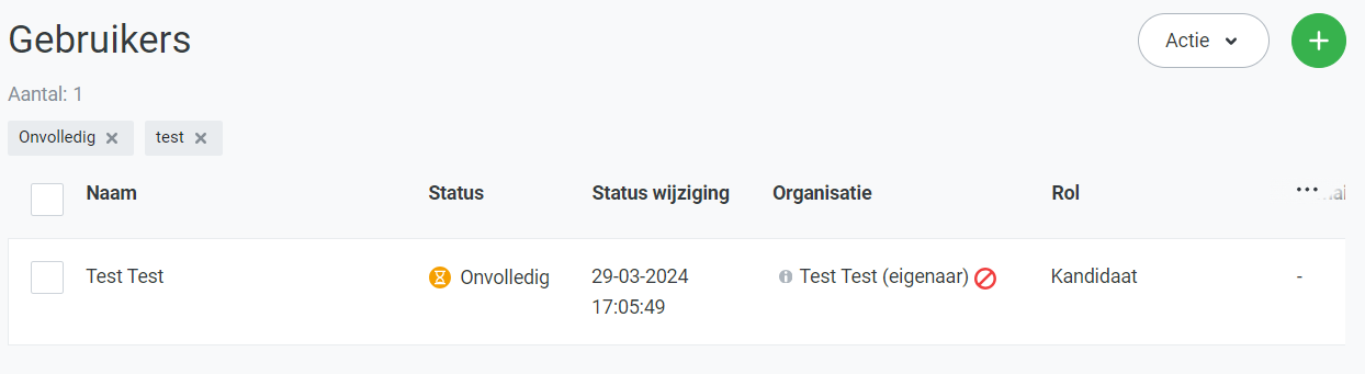 Het kan voorkomen dat een gebruiker in HelloFlex komt te staan met status ‘Onvolledig’. Dit wijst erop dat er belangrijke gegevens voor het activeren en gebruiken van het HelloFlex account ontbreken of al in gebruik zijn bij een andere gebruiker. Controleer in dit geval eerst of er een e-mailadres en een mobiel nummer staan ingevuld; deze zijn namelijk nodig als gebruikersnaam en voor de controle-sms.