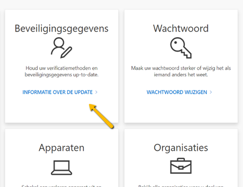 - Klik rechtsboven op je naam en ga naar “account weergeven”. Klik dan op het blok “Beveiligingsgegevens”:
