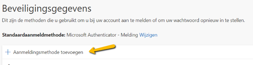 - Klik hier op “Aanmeldingsmethode toevoegen”, selecteer “Authenticator-app” en klik op toevoegen.