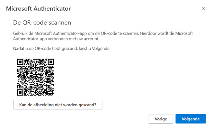 - Voeg je account toe aan de authenticator-app door de QR-code te scannen of de code in te voeren.