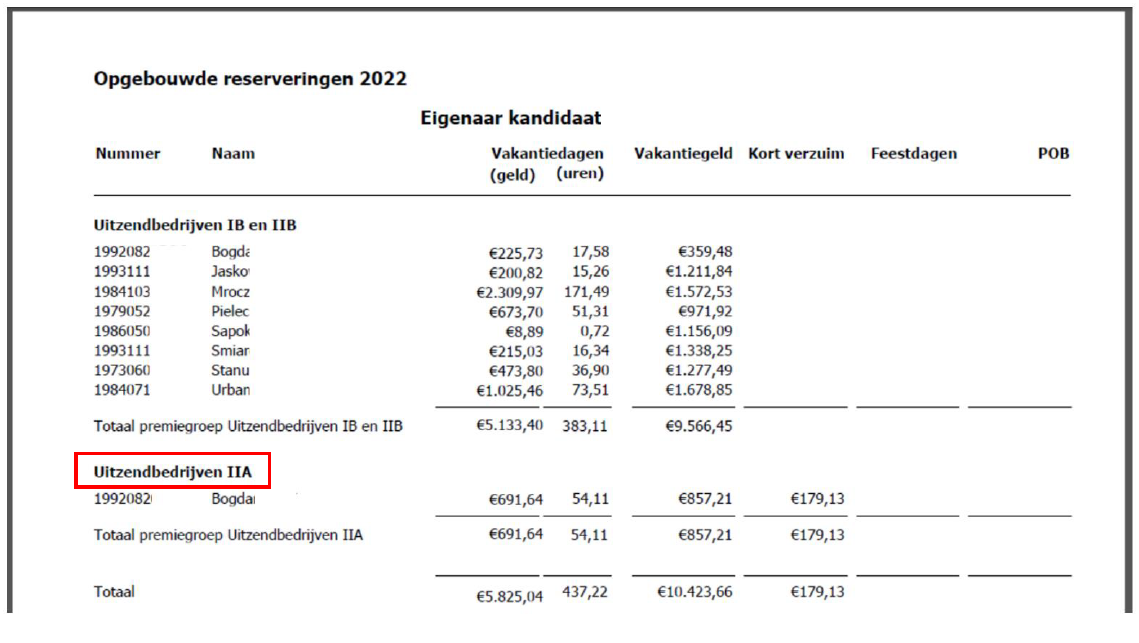De kandidaten die nog reserveringen hebben op premiegroep IA of IIA vallen nu gelijk op, zie hieronder een voorbeeld hoe dit toont.