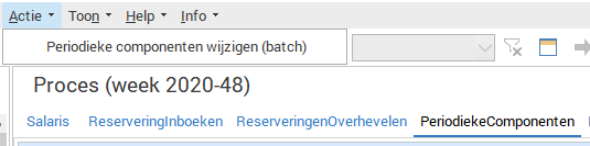 In de module Proces, tabblad Periodieke componenten zit het menu-item: Periodieke componenten wijzigen (batch).