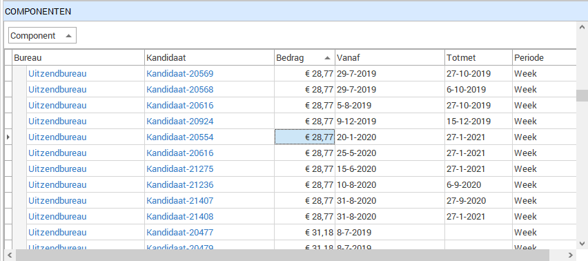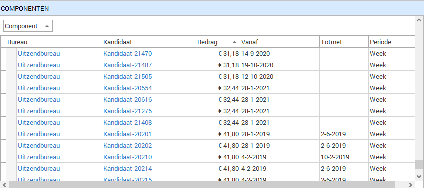 Hierbij is te zien dat het betreffende KandidaatComponent bij Kandidaat-20983 niet is gewijzigd. Deze kandidaat heeft wel een corresponderend component met het juiste bedrag, maar deze is in het verleden af afgesloten, dus niet meer geldig.