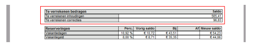 Als het betaalde bedrag hoger is dan het openstaande te verrekenen bedrag, dan wordt het verschil via dezelfde declaratie weer teruggestort naar de kandidaat. Op de loonafrekening wordt dat component getoond onder de groep 'Ontvangen betalingen'.