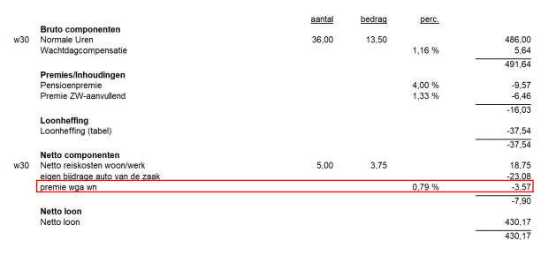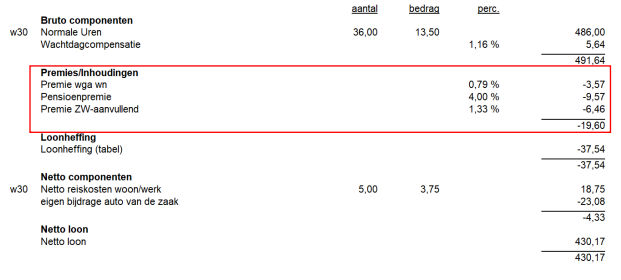 In de standaard database instellingen wordt de premie wga wn op de loonafrekening getoond in het kopje van de Netto componenten. Zo nu en dan komt de vraag langs of het kopje van de Premies/Inhoudingen niet logischer is, en of de inhouding daar getoond kan worden.