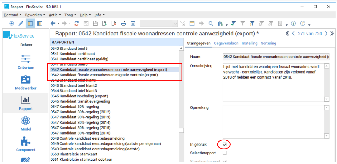 rapporten in gebruik in module Rapport, met onderstaande vink. Daarna zijn ze in module Kandidaat