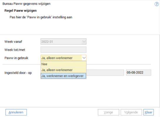 Voor de volledigheid; bij optie “Nee” zal de PAWW in de verloning niet toegepast worden.