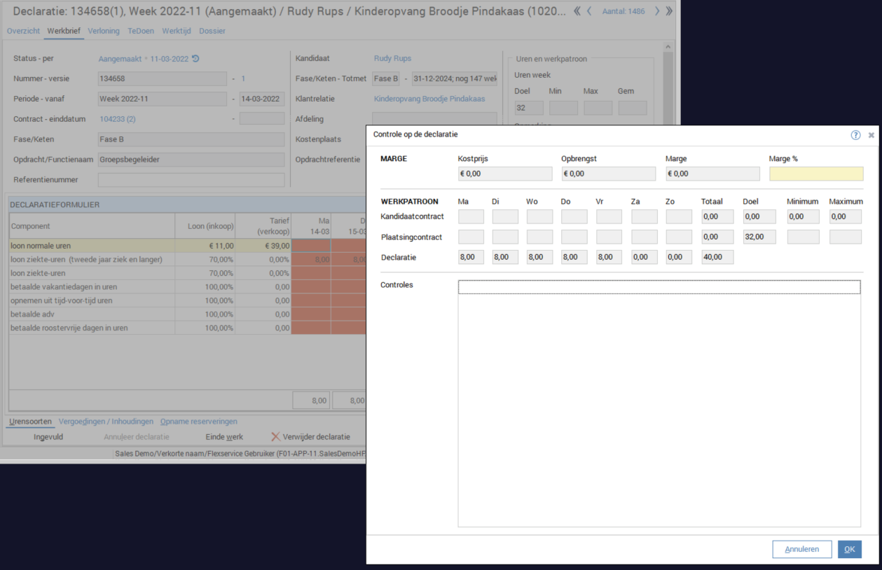 Het normale component wat gebruikt wordt voor de betaling van ziekte heet ‘Loon ziekte uren’. Dit component bewaakt dat altijd minimaal het minimumloon betaald wordt. Zie hieronder een voorbeeld van zo’n controle.