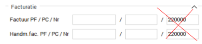 Dan is er nog de mogelijkheid om de handmatige facturen een aparte range te geven. Hier worden de meeste fouten gemaakt. Onderstaande instelling leidt tot dubbele factuurnummers. Voor de reguliere facturen wordt nu begonnen met nummer 220000, maar ook de eerste handmatige factuur zal nummer 220000 krijgen.