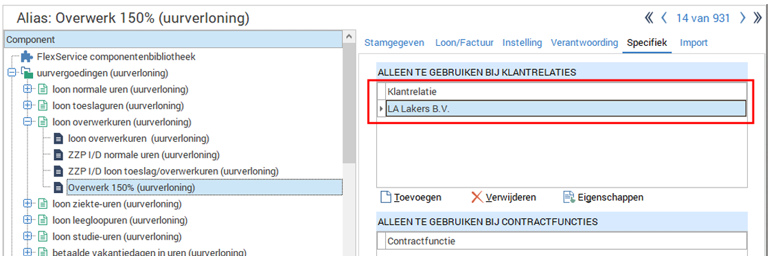 Soms heb je de situatie dat een bepaald verloningscomponent specifiek is voor een bepaalde klant. En dan wil je niet dat het component per ongeluk ook bij andere klanten gebruikt wordt. Dat kun je inregelen op onderstaande manier.