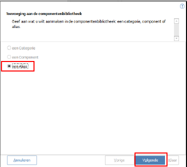 Klik op knop “nieuw” bovenin het scherm. Er wordt nu een pop-up getoond. Kies voor het toevoegen van een alias.