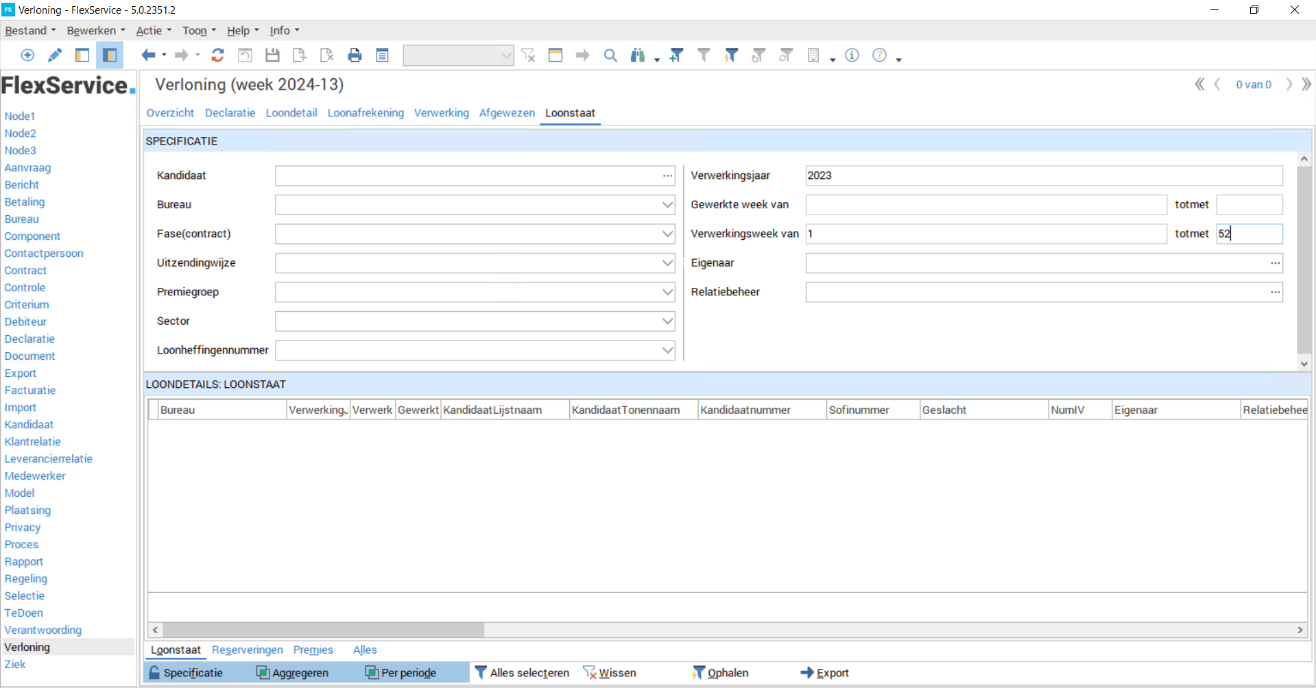 Het ophalen van gegevens in de loonstaat begint bij het invullen van een periode waarover je wil kijken. Hier ontstaat al een eerste belangrijk punt; kijk je naar de Gewerkte week of de Verwerkingsweek.