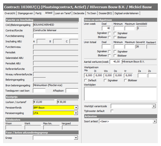 Om te bepalen welke pensioenfondsen en –regelingen beschikbaar zijn in een contract wordt gekeken naar de regeling die is gekozen. Het pensioenfonds BPF Bouw en de onderliggende pensioenregelingen BPM en UTA zijn alleen beschikbaar als de CAO Bouwnijverheid is gekozen. Omdat het mogelijk is om eigen CAO’s/regelingen toe te voegen die tot eenzelfde CAO behoren, wordt voor het bepalen van CAO Bouwnijverheid gekeken naar de ‘Loonaangifte code’ van een CAO. Alleen bij ‘Loonaangifte code’ 10 zal pensioenfonds BPF Bouw met de onderliggende pensioenregelingen beschikbaar zijn.