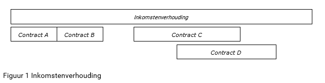 In het nieuwe bouwpensioenbericht is de inkomstenverhouding een belangrijk begrip. Het leunt dicht tegen een contract aan, maar is toegespitst op het bouwpensioen. Het begin van een inkomstenverhouding is gelijk aan de eerste werkdag bij een pensioenregeling, maar kan meerdere contracten overspannen (zie Figuur 1).