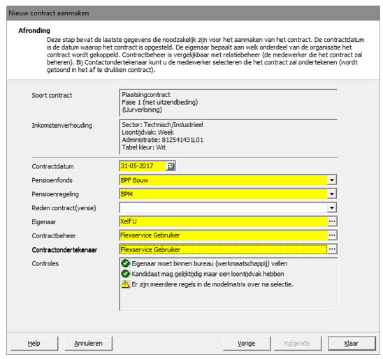 Bij het aanmaken of wijzigen van een contract wordt in de stap afronding het pensioenfonds en eventueel de pensioenregeling opgegeven. Het pensioenfonds en de pensioenregeling zijn gekoppeld aan een contractversie. Alle declaraties verwerkt op de betreffende contractversie worden met de gekozen pensioenregeling verwerkt.