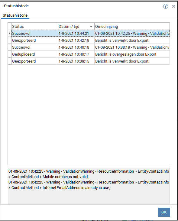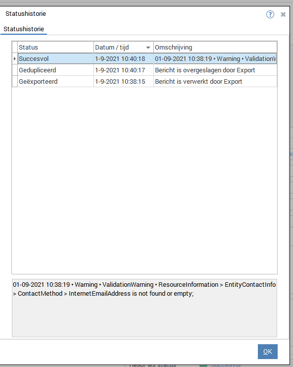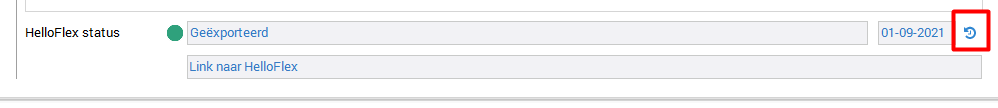 Stamgegeven. Hier staat rechtsonder in de HelloFlex status. Achter deze status staat een klokje; de statushistorie: