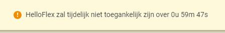 Gedurende de HelloFlex ‘down time’ zien zij na het inloggen in de header dat de HelloFlex niet beschikbaar is voor reguliere gebruikers. Deze boodschap is te zien op elke pagina en kan niet worden weg geklikt.