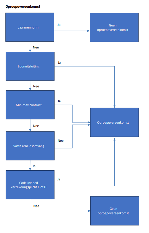 Zie onderstaand schema voor de beslissing of er sprake is van een oproepovereenkomst.