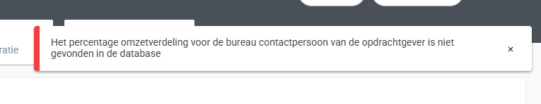 Foutmelding 2: Percentage omzetverdeling voor de bureau contactpersoon van de opdrachtgever is niet gevonden
