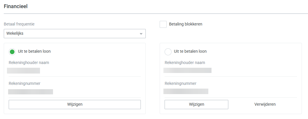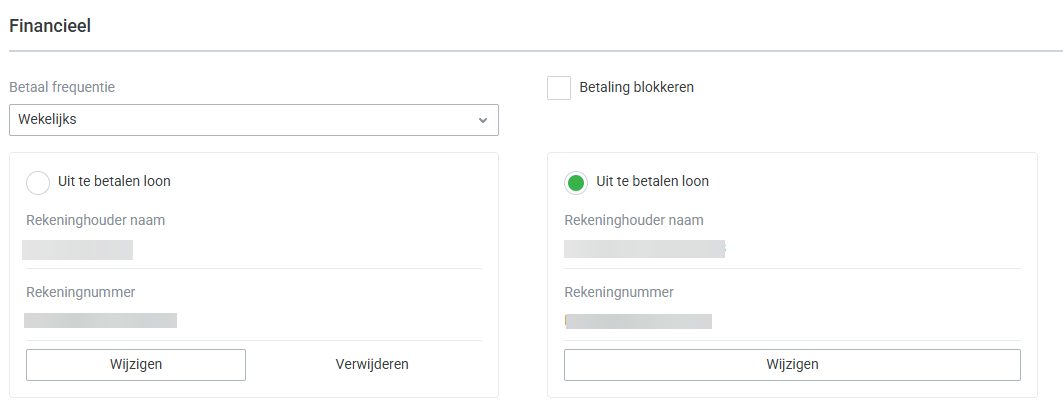 Bij meerdere bankrekeningen kun je zelf aangeven welke rekening actief is voor salarisbetaling.